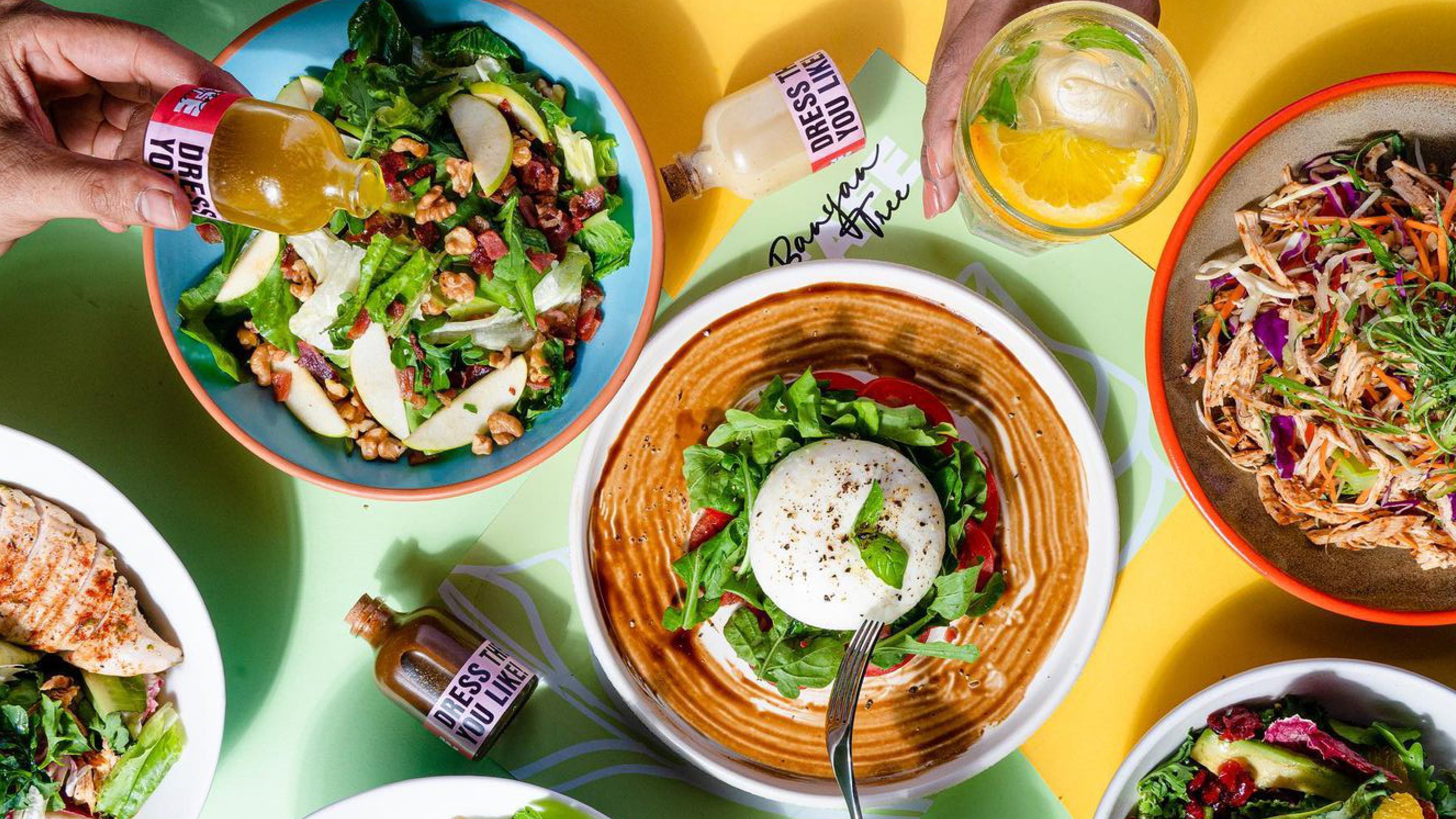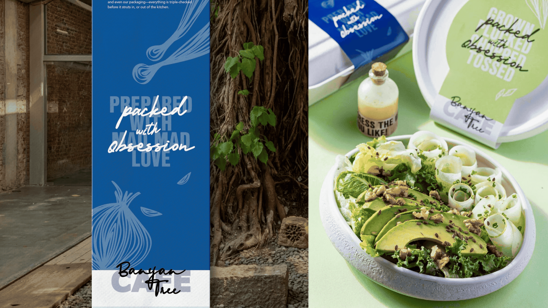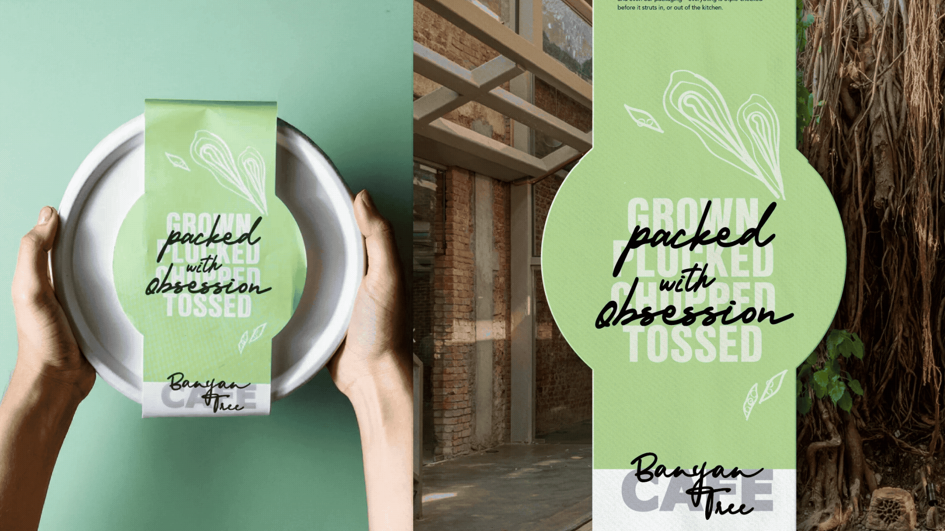 IDEA: Transform the experience of eating healthy food by approaching it through energy and care, mirroring the banyan tree’s symbolism of rootedness and nurturing. The café’s commitment to detail, from their terrace garden to adopted farms, became a guiding thought: Everything we create is nurtured with obsession: Grown, Tossed, Cooked, Mixed, Stirred, Created, and Picked with Obsession!